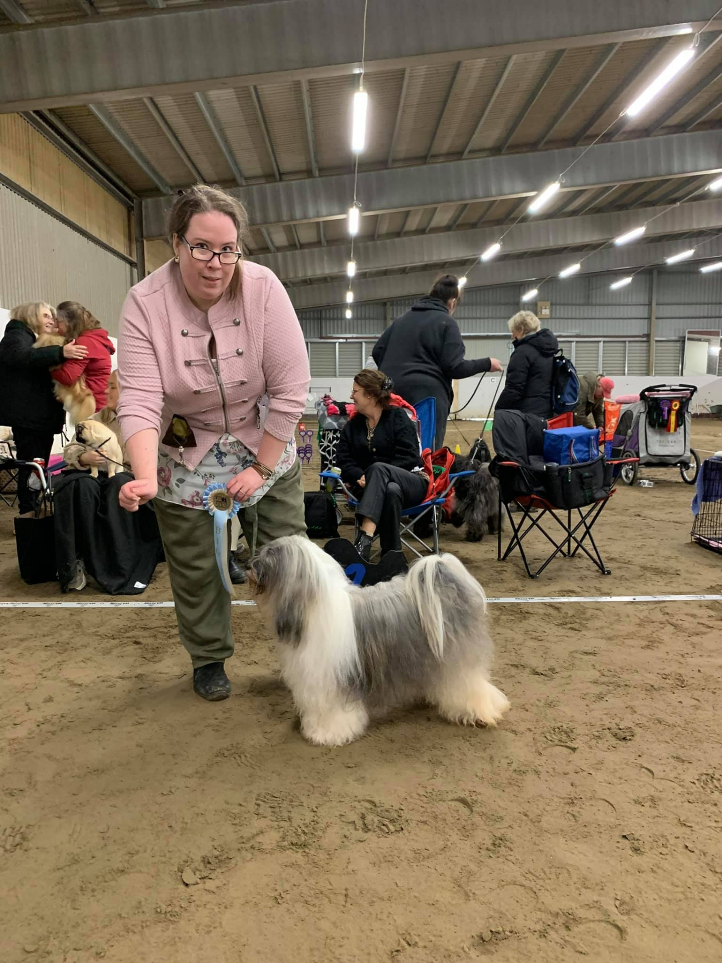 Dante utställningsdebuterar för en rasspecialist på en inofficiell utställning, precis fyra månader gammal, och blir BIS-valp!